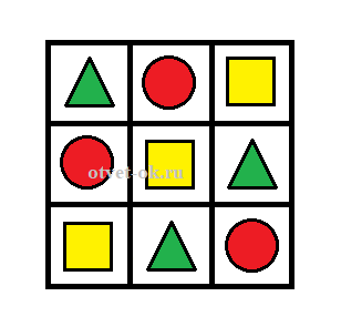 Попробуй вставить в каждую клетку таблицы круг, квадрат или треугольник так, чтобы в каждой строке и в каждом столбце были разные фигуры. Обсуди своё решение с одноклассниками.