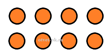 Разложи их в два ряда так, чтобы в одном ряду было столько же кружков, сколько в другом.