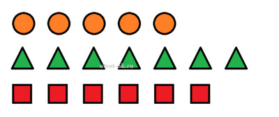Выложи треугольников больше, чем кружков, а квадратов меньше, чем треугольников.