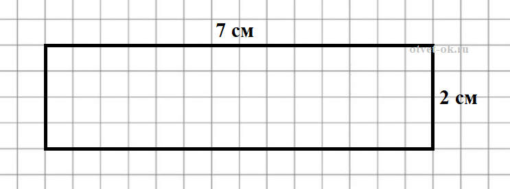 4. Начерти прямоугольник, длина которого 7 см, а ширина на 5 см меньше. Найди периметр этого прямоугольника.