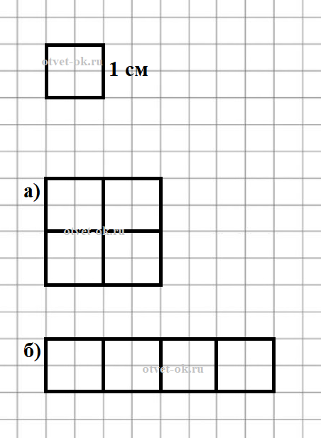 9. Начерти квадрат со стороной 1 см. Составь из 4 таких квадратов: а) квадрат; б) прямоугольник. Найди периметр каждой фигуры.