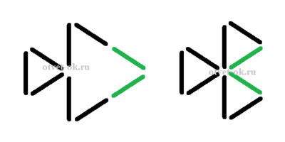 7. Составь из палочек такую фигуру, как на рисунке. Объясни, как переложить 2 палочки, чтобы получилось 3 треугольника.