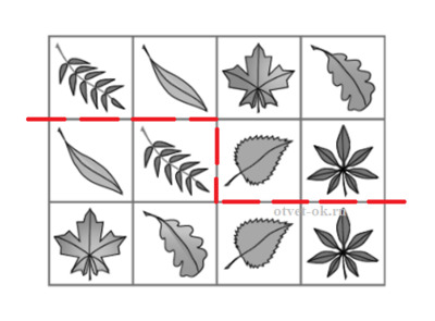 10. Объясни, как разрезать прямоугольник на две одинаковые части так, чтобы в каждой из них не было одинаковых рисунков. Обсуди своё решение с одноклассниками.