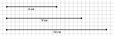 10. Начерти в тетради 3 отрезка: длина первого 6 см, а каждый следующий на 3 см длиннее предыдущего.