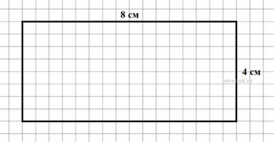 8. Начерти прямоугольник, длина которого 8 см, а ширина составляет половину длины. Найди периметр этого прямоугольника.