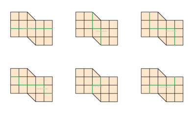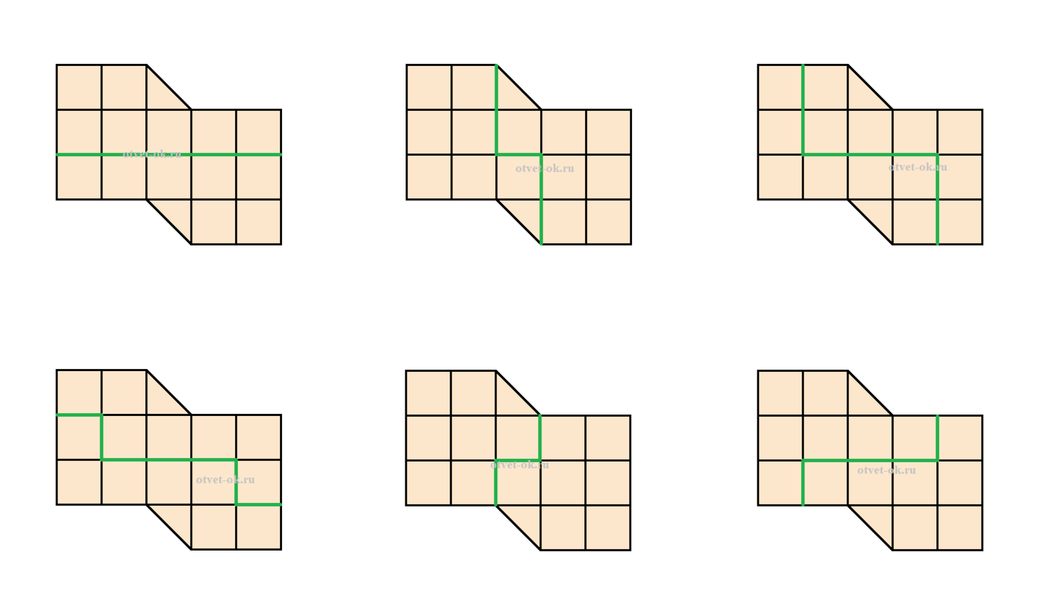 10. Разрежь фигуру по линиям сетки на две одинаковые части двумя разными способами. Обсуди своё решение с одноклассниками.