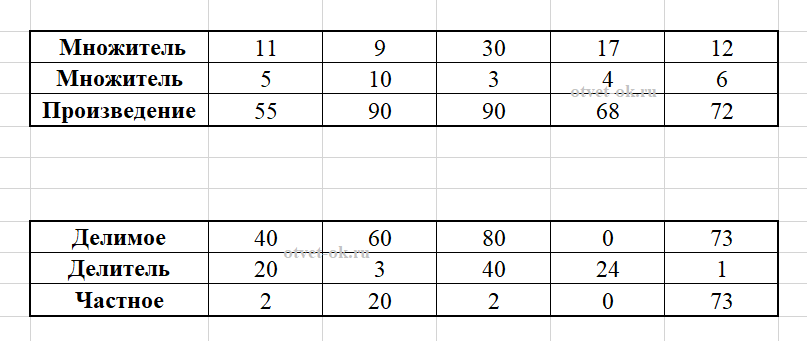 1. Запиши в тетради значения произведений и частных.