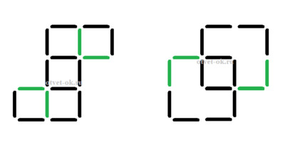 9. Составь из палочек такую фигуру, как на рисунке. Переложи 4 палочки так, чтобы получилось 3 квадрата. Обсуди своё решение с одноклассниками.