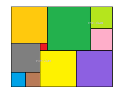 Сторона желтого квадрата = сторона коричневого квадрата + сторона серого квадрата - сторона красного квадрата = 2 + 4 - 1 = 5 см