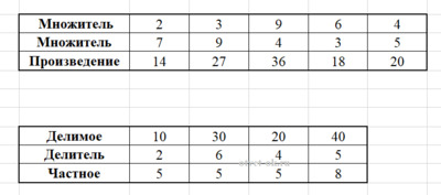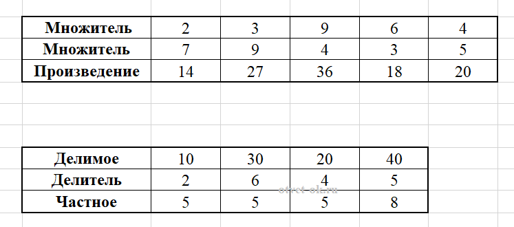 Назови числа, которые в 4 раза больше, чем 4; 7; 5; 9; 6.