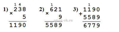 И наконец, умножим 5 сотен на 3, получится 15 сотен. Это число сотен записываем в произведении слева от 9 десятков. Читаем ответ: значение произведения чисел 529 на 3 равно 1 587.
