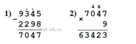 г) разность чисел 9 345 и 2 298 увеличить в 9 раз.