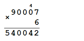 Найдём значение произведения чисел 90 007 и 6. Умножим 7 единиц на 6, получится 42 единицы.
