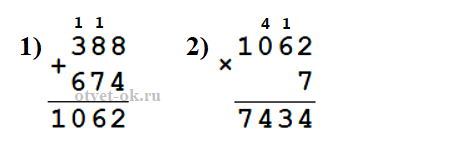 а) сумму чисел 388 и 674 увеличить в 7 раз;