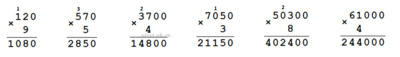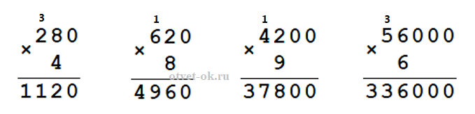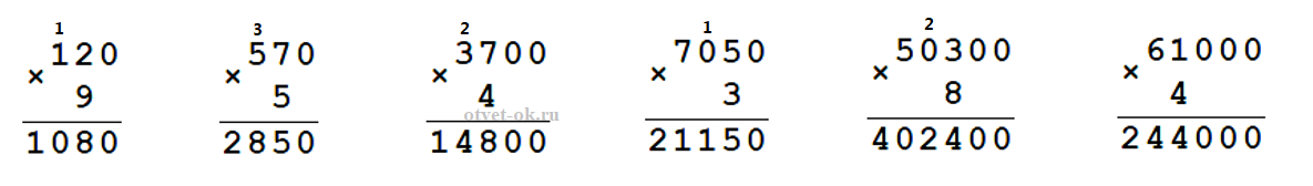4. Найди значения произведений, записывая множители в столбик.
