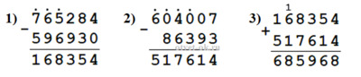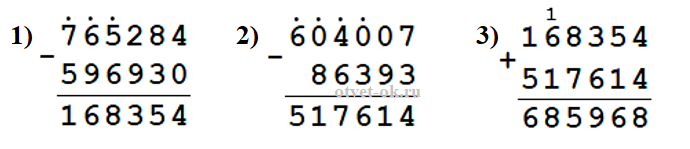б) (765 284 - 596 930) + (604 007 - 86 393) = 685 968