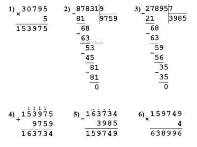 (30 795 • 5 + 87 831 : 9 - 27 895 : 7) • 4 = 638 996