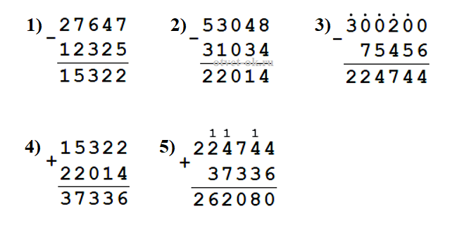 (27 647 - 12 325) + (53 048 - 31 034) + (300 200 - 75 456) = 262 080