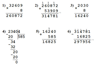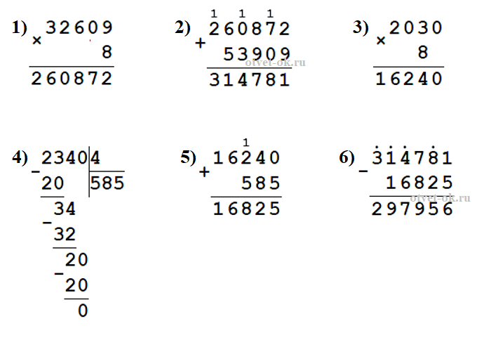 (32 609 • 8 + 53 909) - (2 030 • 8 + 2 340 : 4) = 297 956