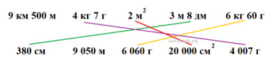 9 км 500 м 4 кг 7 г 2 м2 3 м 8 дм 6 кг 60 г