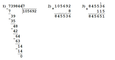 739 844 : 7 • 8 + 115 = 845 651