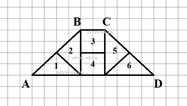 9. Найди и запиши названия острых и тупых углов трапеции ABCD. Объясни, как разрезать трапецию ABCD на 6 одинаковых частей.