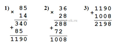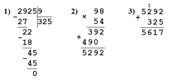 85 • 14 + 36 • 28 2 925 : 9 + 98 • 54