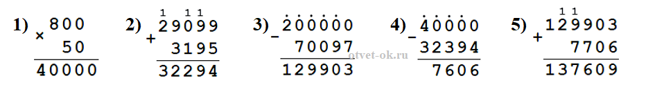 800 • 50 - (3 195 + 29 099) + (200 000 - 70 097)