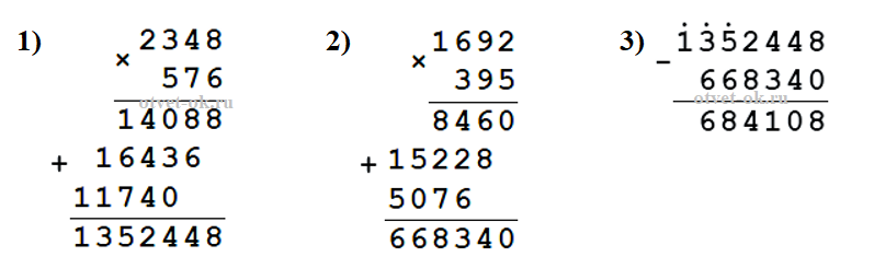 в) из произведения чисел 2 348 и 576 вычесть произведение чисел 1 692 и 395;