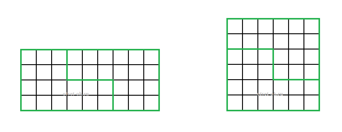 8. Объясни, как разрезать прямоугольник размером 4 на 9 клеток на две одинаковые части и составить из них квадрат. Обсуди своё решение с одноклассниками.