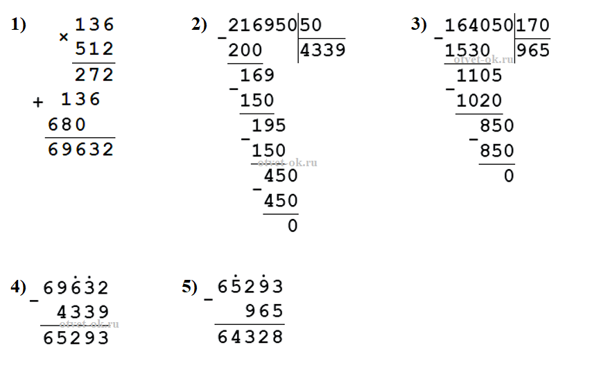 136 • 512 - 216 950 : 50 - 164 050 : 170 = 64 328